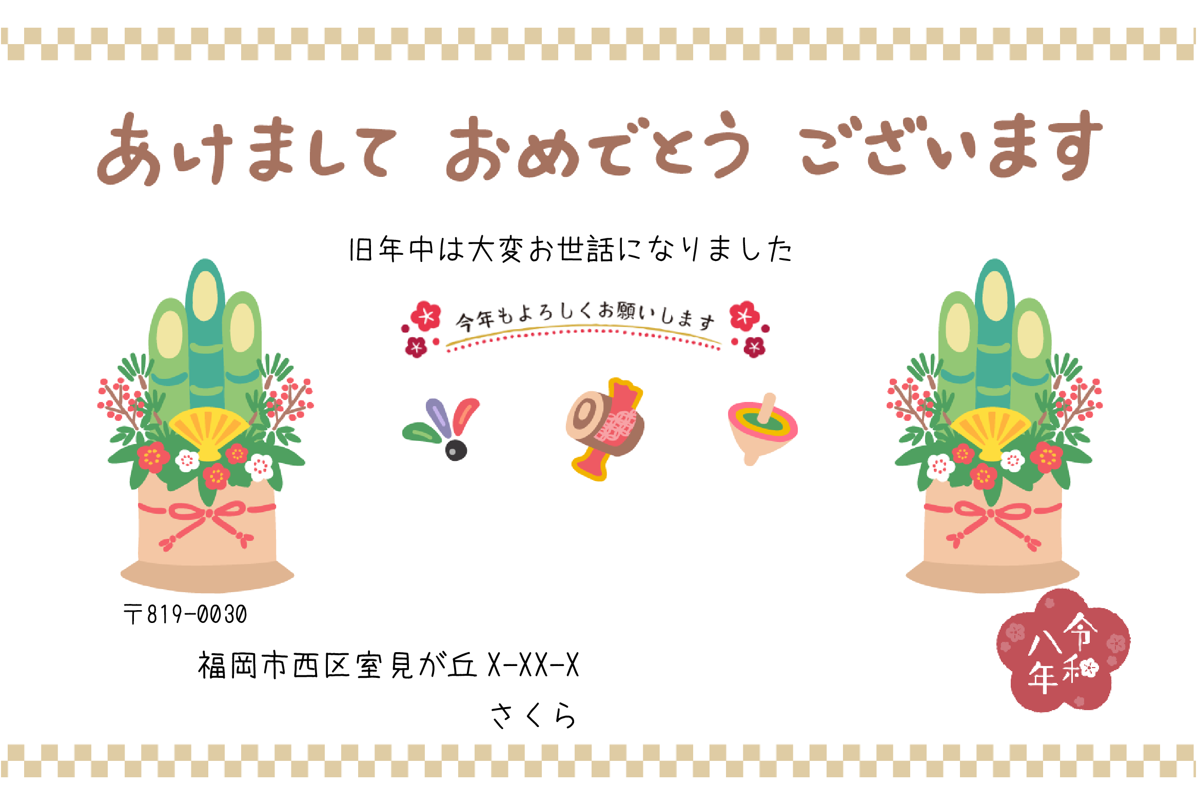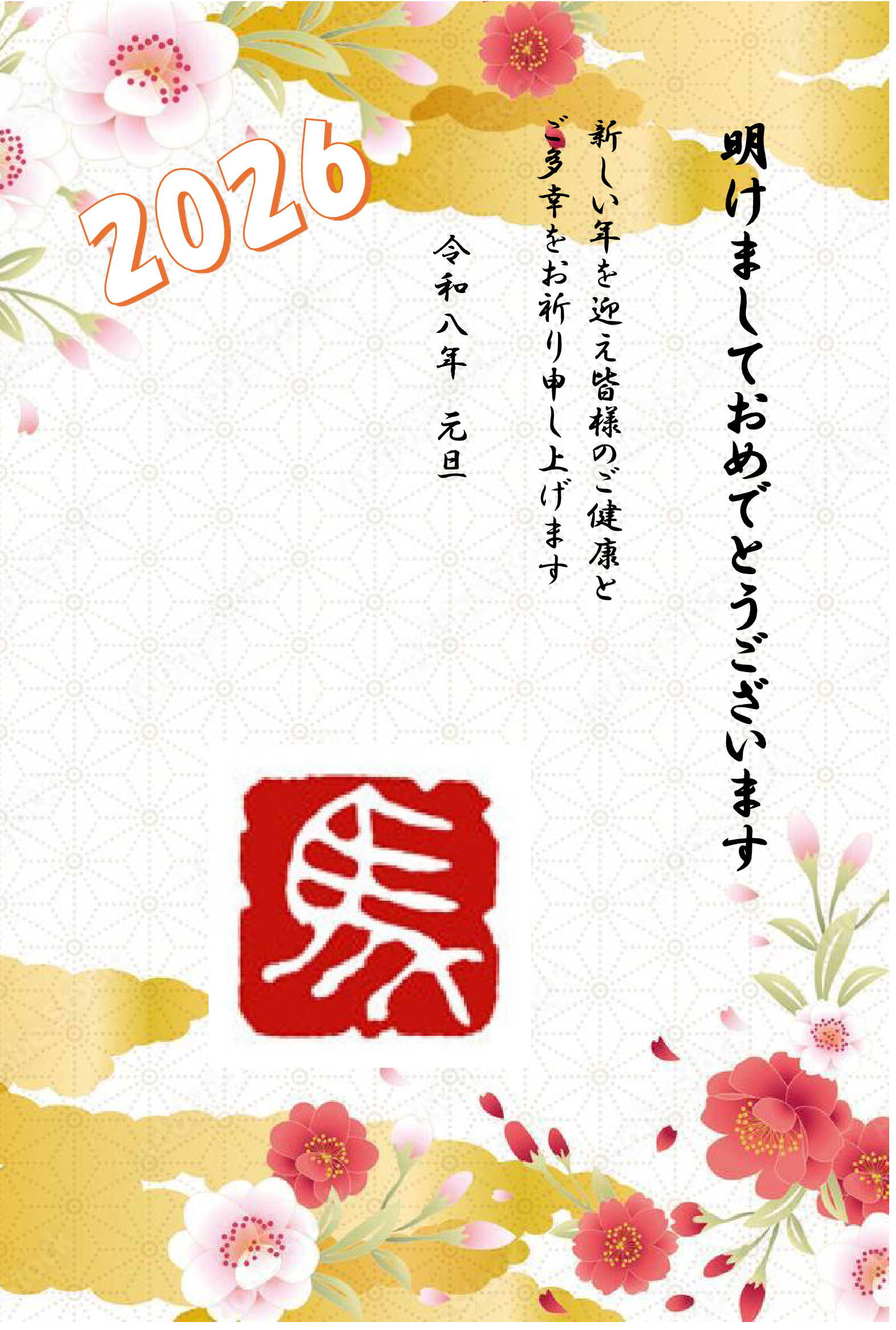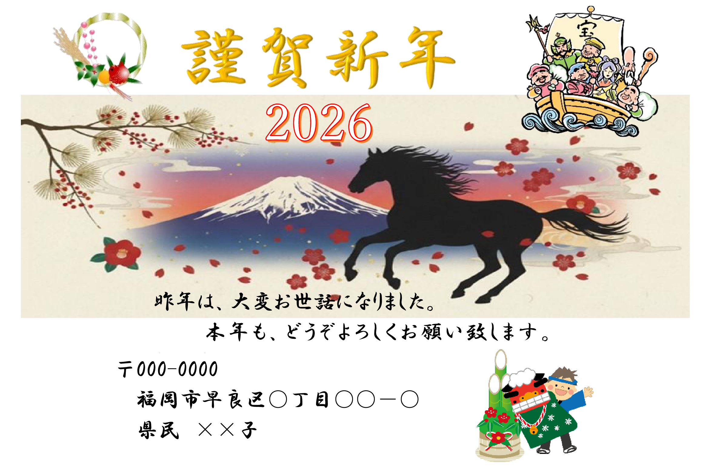 正月らしい背景と画像を選び組み合わせてみました。