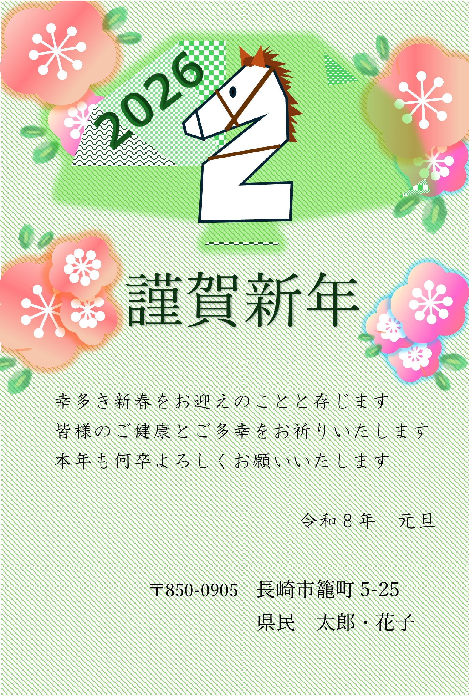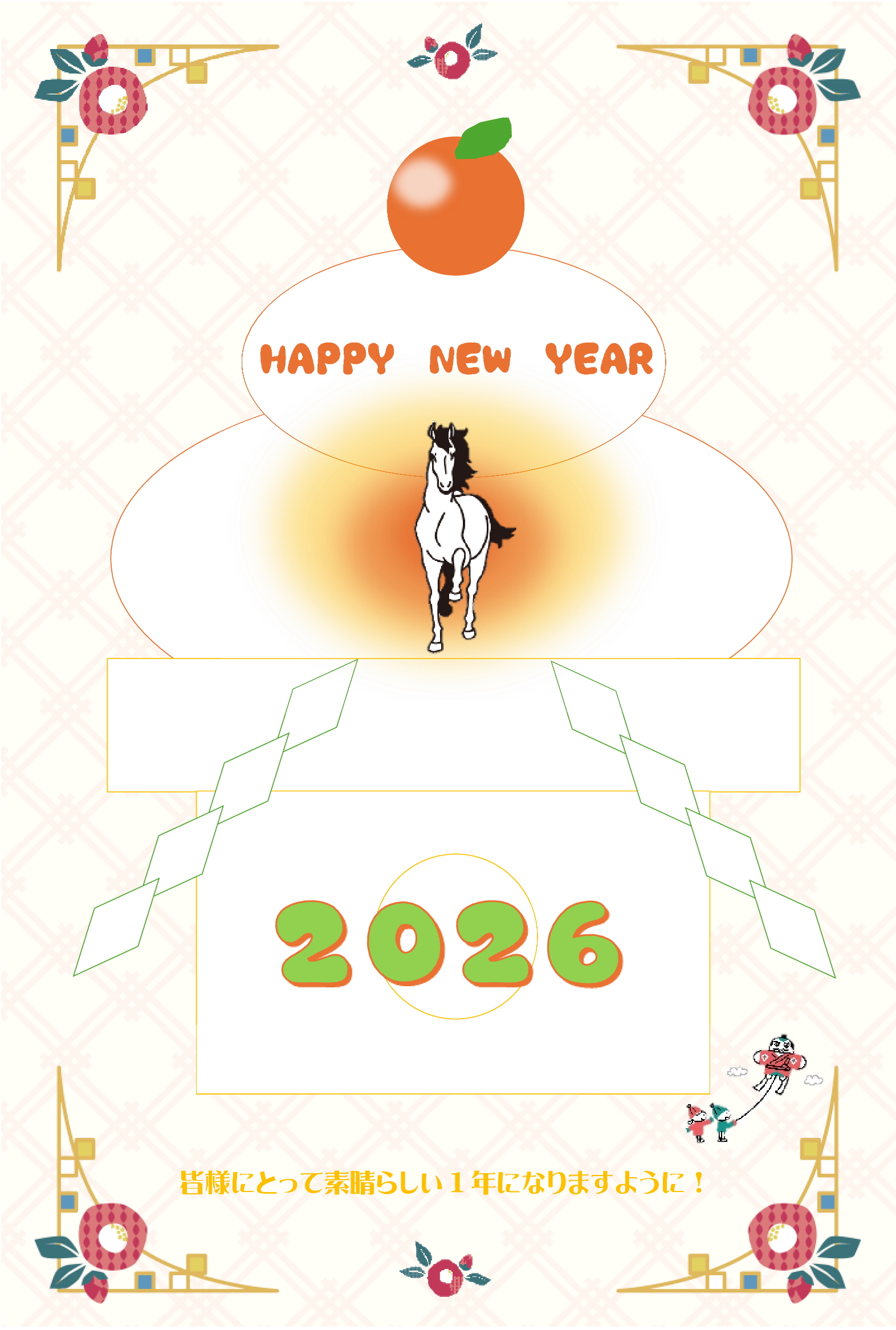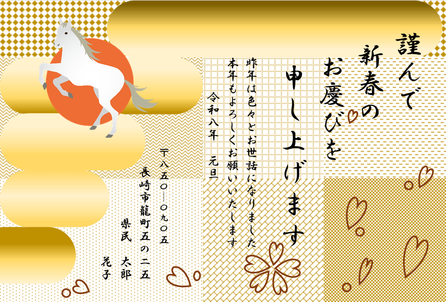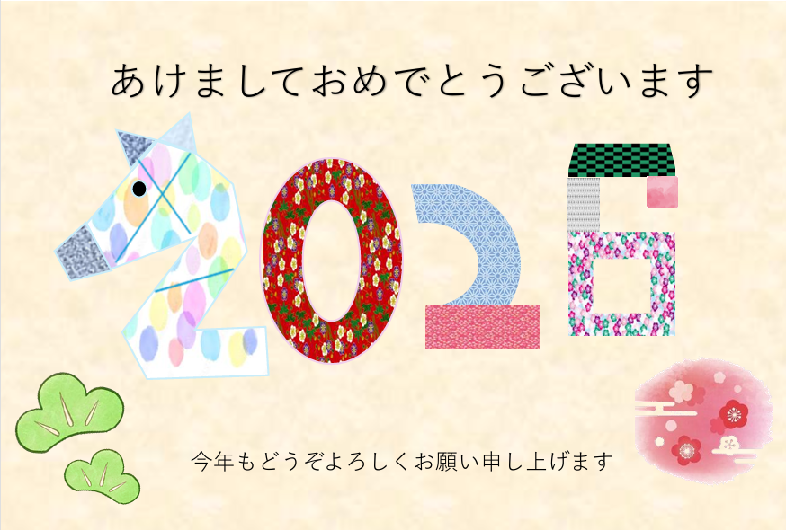 今年のテキスト「年賀状2-4」がステキだったので図形を使って作成しました。