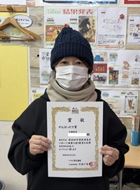 ![]() 滑石教室 れんさま | インストラクターのコメント 「がんばったで賞」の受賞おめでとうございます 小学2年生、年賀状作成中、目を輝かせながら画像を入れたり色を変えたりする姿がとても印象に残っています。自分で考え、工夫しながら仕上げた作品は本当に素敵です。これからも、その発想力とチャレンジする気持ちを大切に、さらに成長していってくれることを期待しています。 生徒様のコメント |