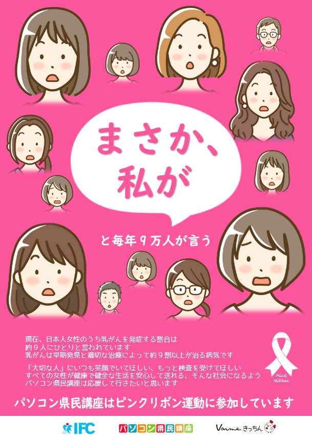 パソコン県民講座は、ピンクリボン運動に参加しています